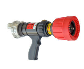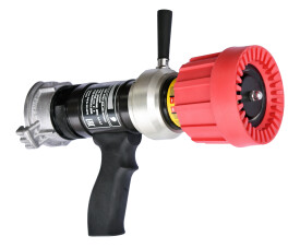 Handline nozzles of RSKU series operate in a pressure range from 0.4 to 1.7 MPa and flow rates from 0.5 to 15 L/s, with manual flow control and variable stream geometry from a straight stream to a shielding screen of 120° and providing the fire extinguishing agent flow shutoff.