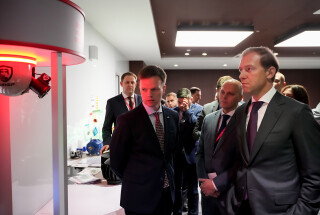 The firefighting robot is applied for formation of extinguishing solution streams with adjustable spray angle from a straight stream to a dispersed at 90°. The firefighting robot is used for fire suppression, cooling of buildings and technological structures, precipitation of poisoned or radioactive gases, fumes and dusts in fire hazardous zones.