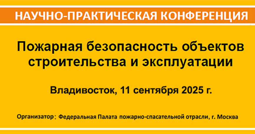 11 сентября 2025 г. во Владивостоке состоится конференция "Пожарная безопасность объектов строительства и эксплуатации". Организатор: Федеральная палата пожарно-спасательной отрасли.