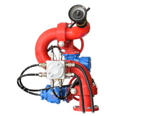 Пожарные лафетные стволы собственного производства с расходами от 15 до 330 л/с, с ручным и дистанционным управлением, с дополнительными сертифицированными опциями: осциллятором, эжектором, автоматическим насадком, с защитным экраном, с шаровым шарниром и т.п.